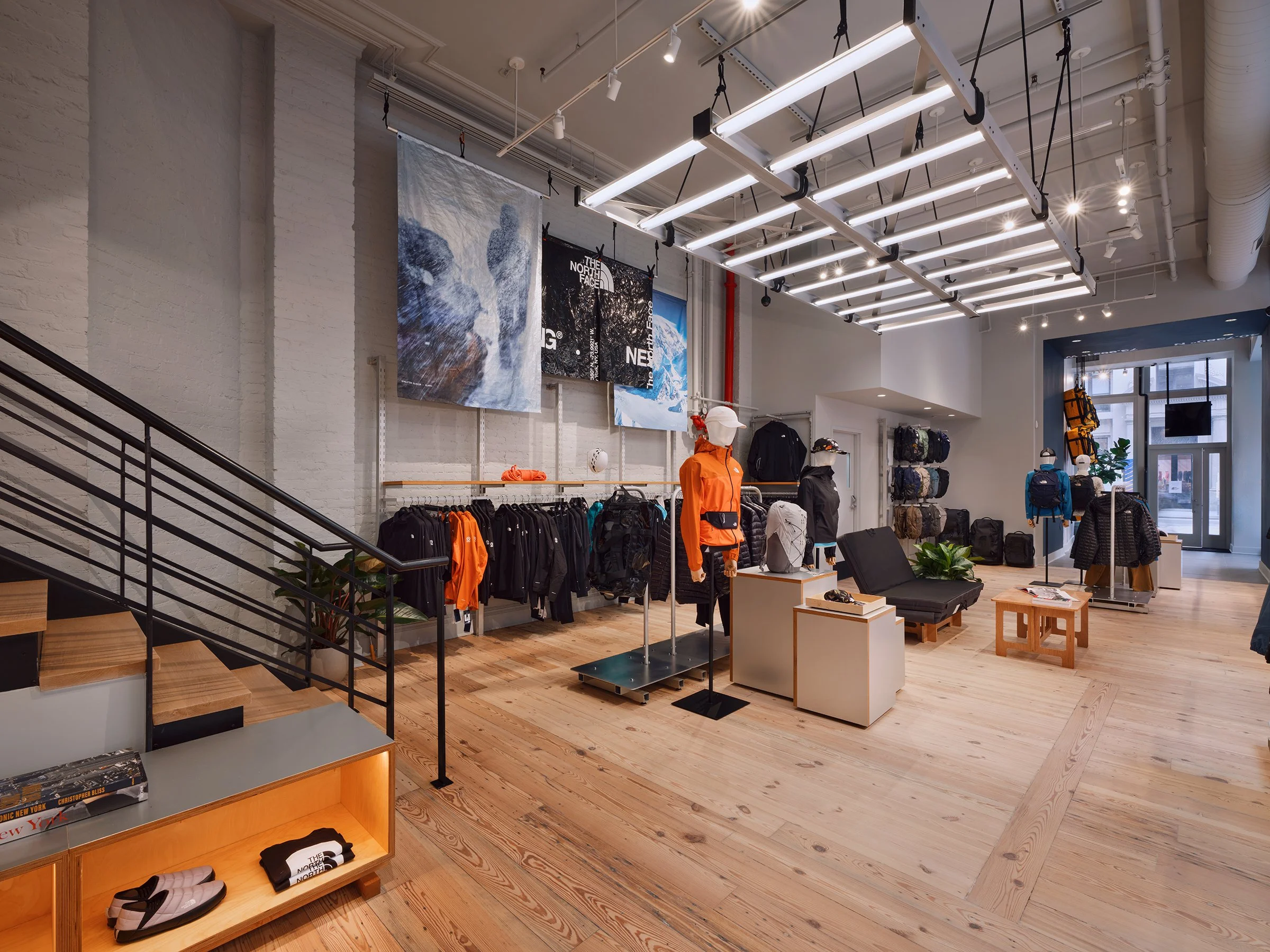 The Flatiron store advances The North Face’s emerging neighborhood retail strategy — a format designed to communicate innovation with greater clarity and depth. Rather than relying on traditional lifestyle cues, the environment foregrounds the brand’s technical lineage, product engineering, and expedition heritage. Every material, graphic, and fixture decision reinforces a single objective: create a retail experience that feels as considered and performance‑driven as the gear itself.